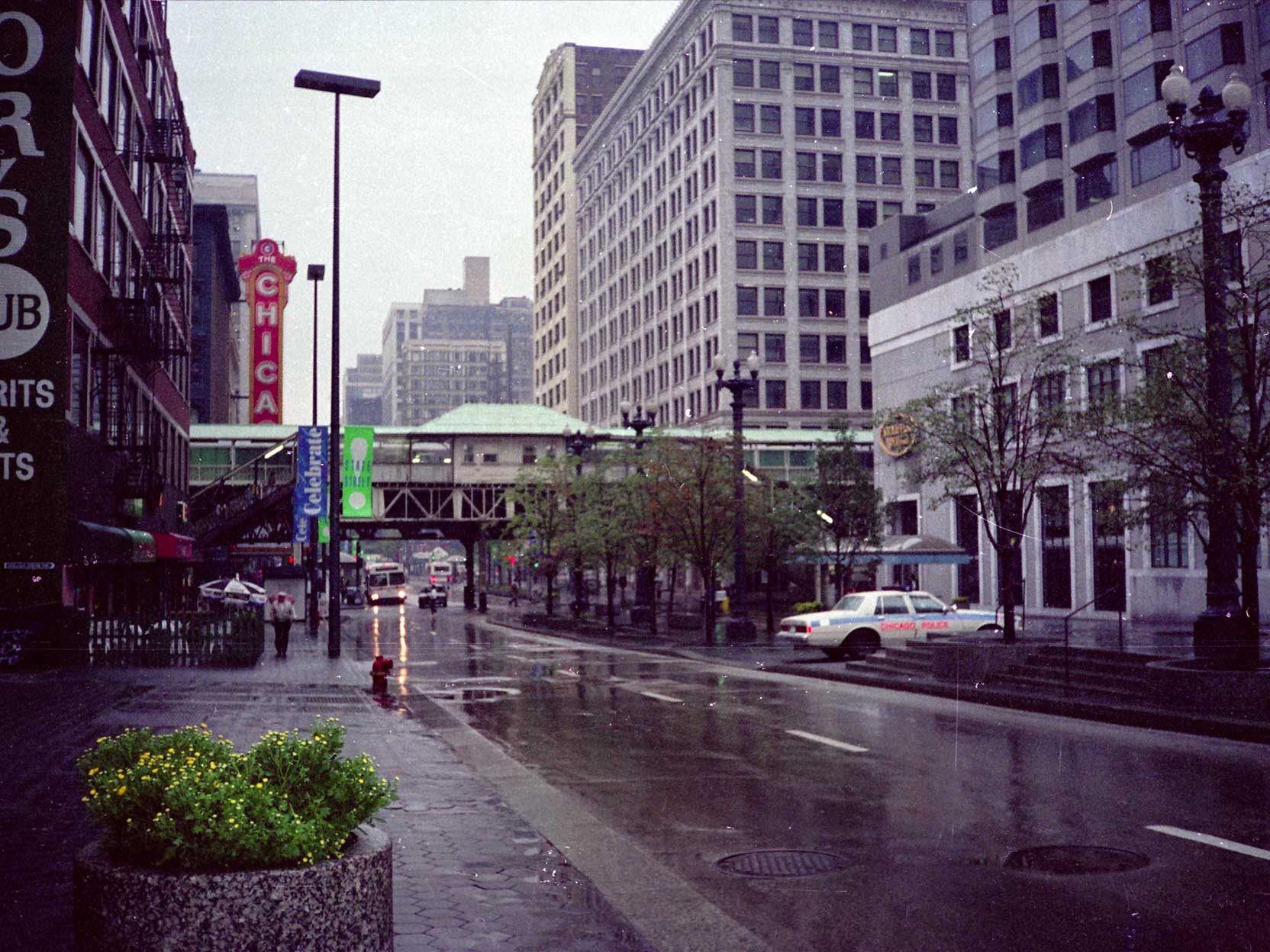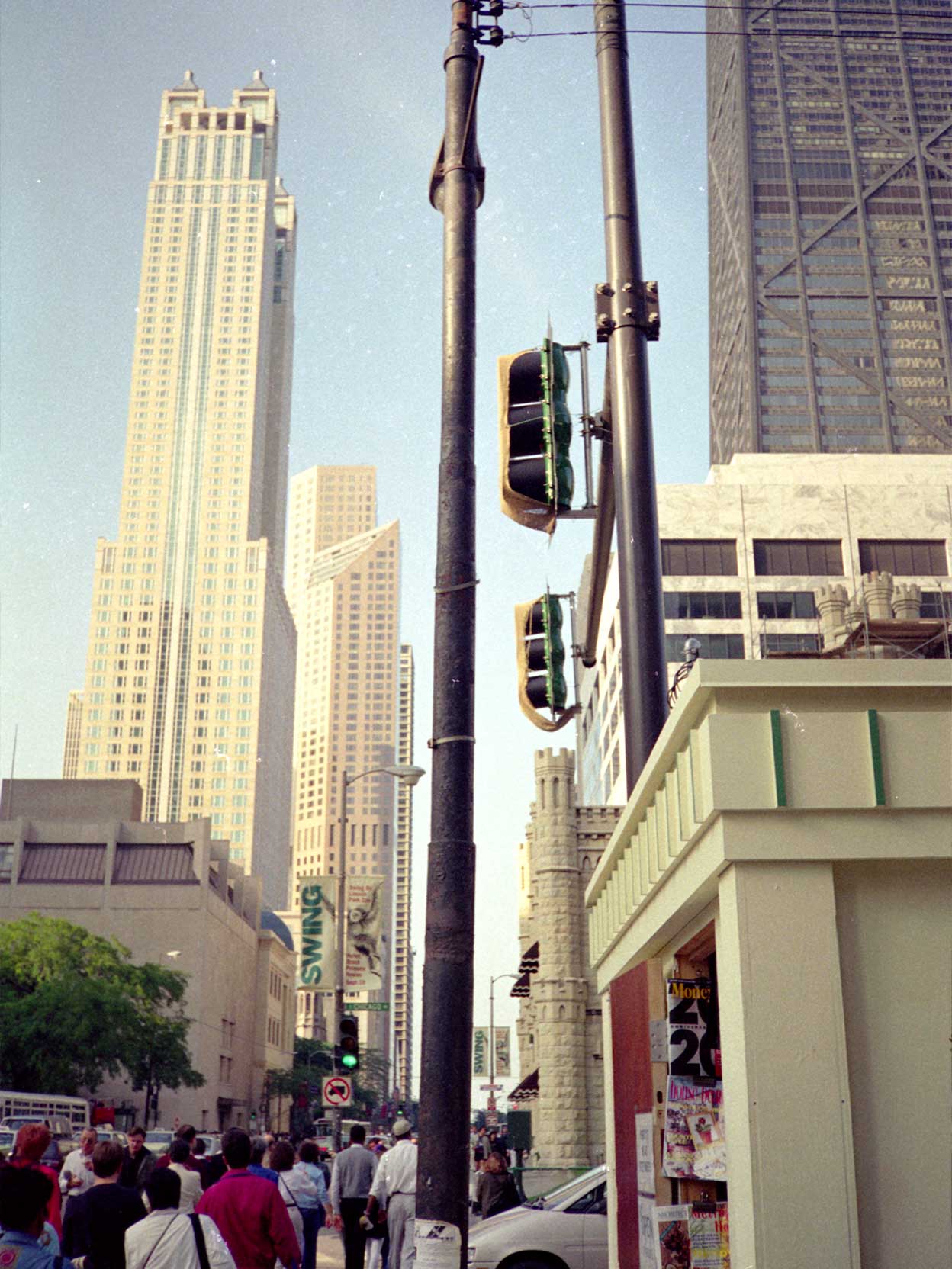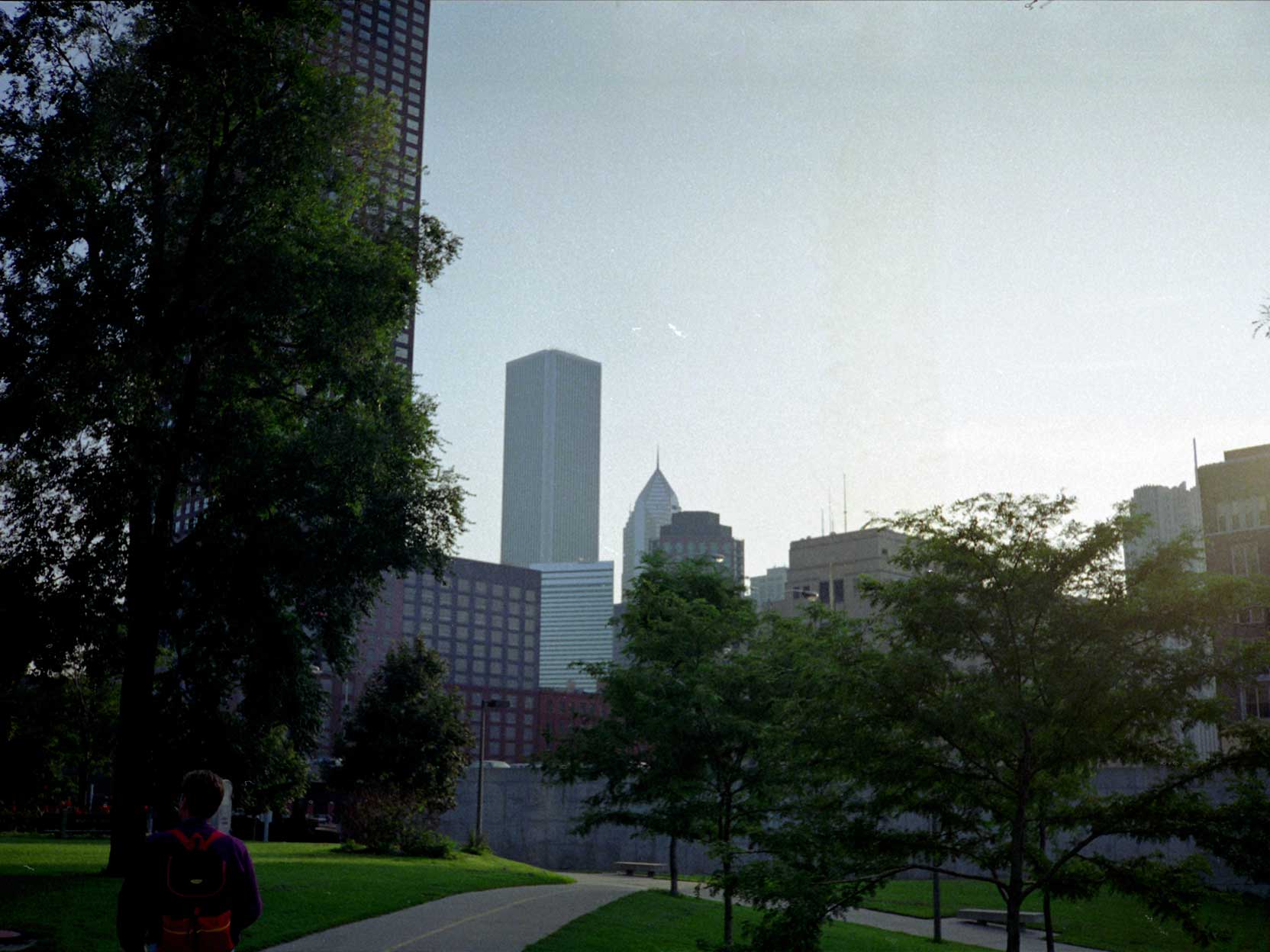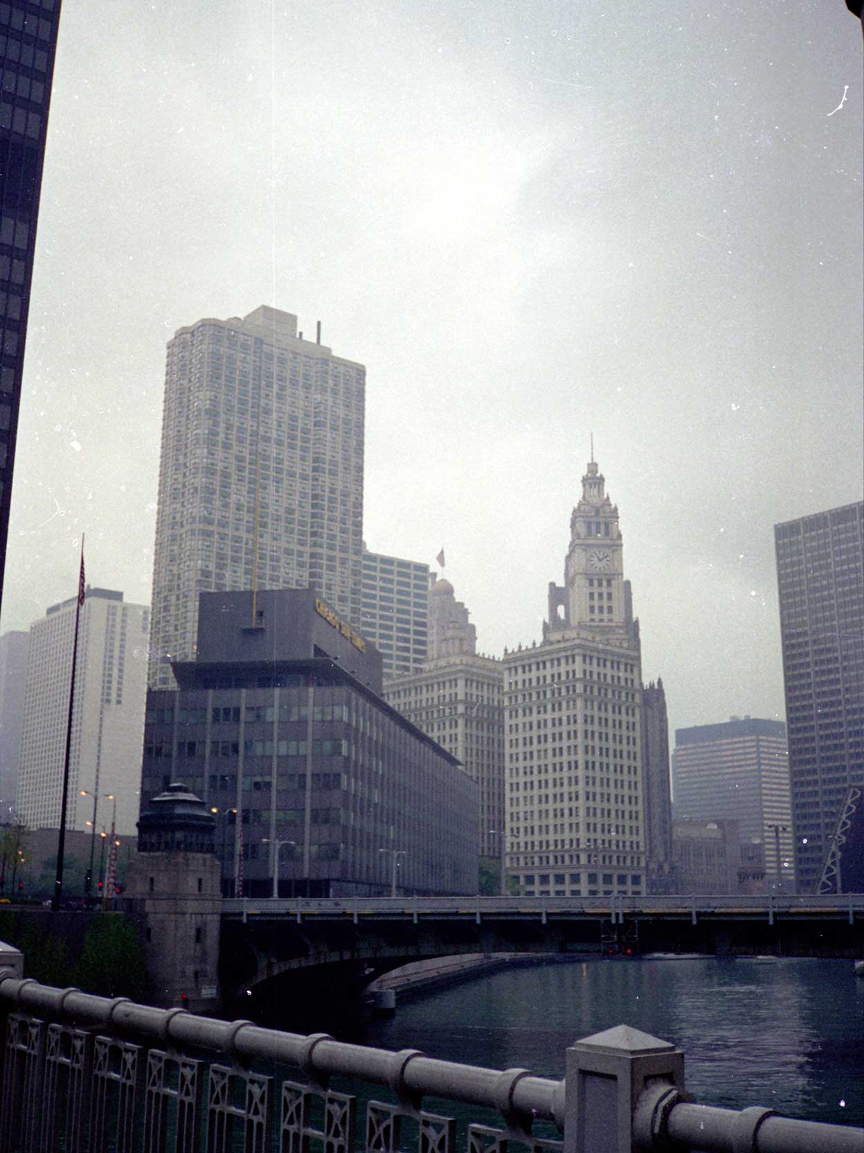 Om een uur of 3 waren we weer op het metrostation en klaar om terug te gaan naar “The Loop”. Daar aangekomen zijn we eerst naar de Buckingham Fountain gelopen, de fontein van “Married With Children”. Toen zijn we naar het Sears building gelopen, het hoogste gebouw ter wereld. We zijn in het gebouw (door Mies v.d. Rohe gebouwd) naar het obsevatory platform gegaan. Schitterend, alleen was het erg druk. Naast het Sears building staat nog een flink hoog gebouw; Als je echter in het Sears building staat is het gebouw ± 75 meter lager; Als je ervoor staat is het bijna net zo hoog. Optisch bedrog dus.