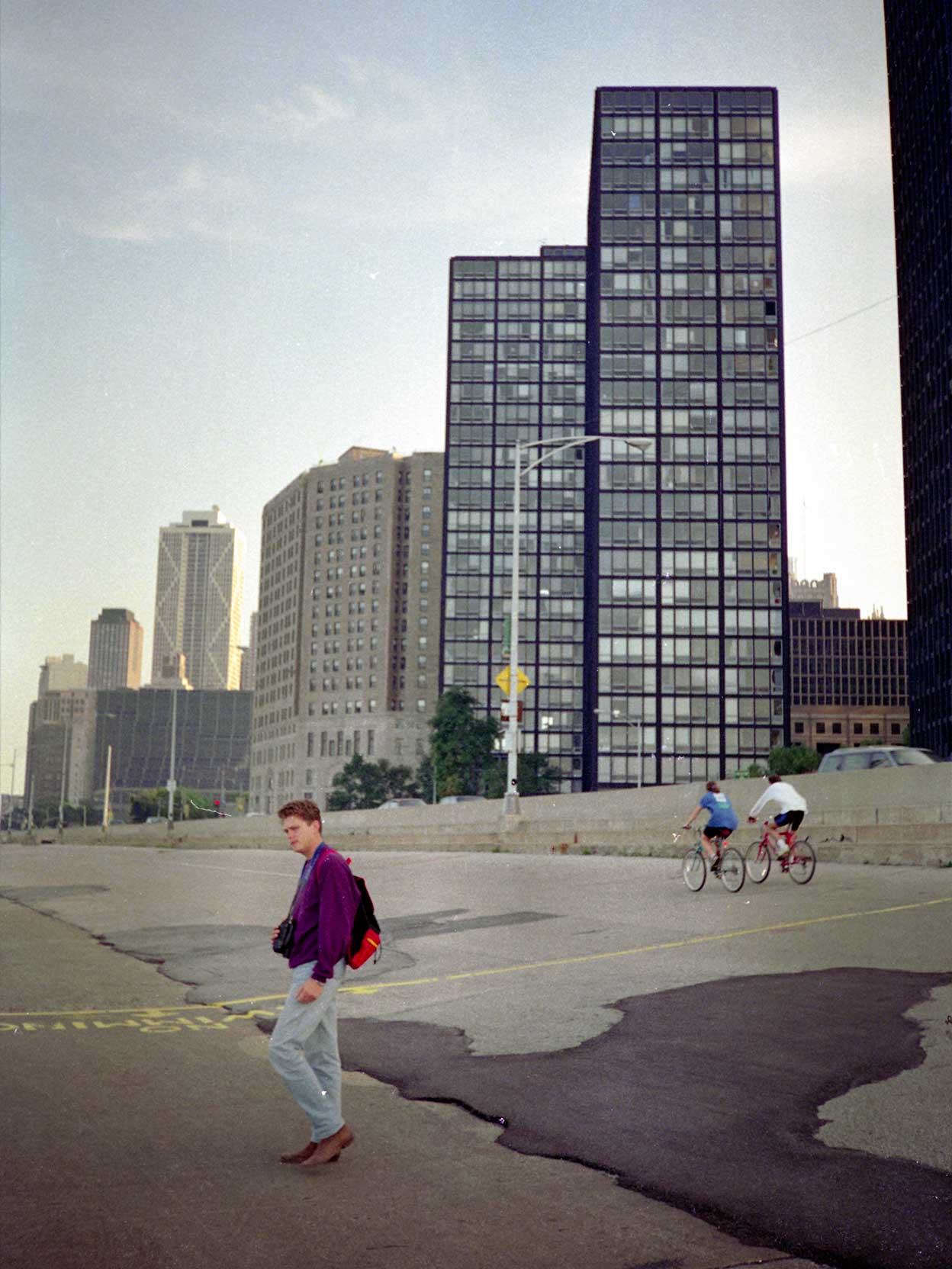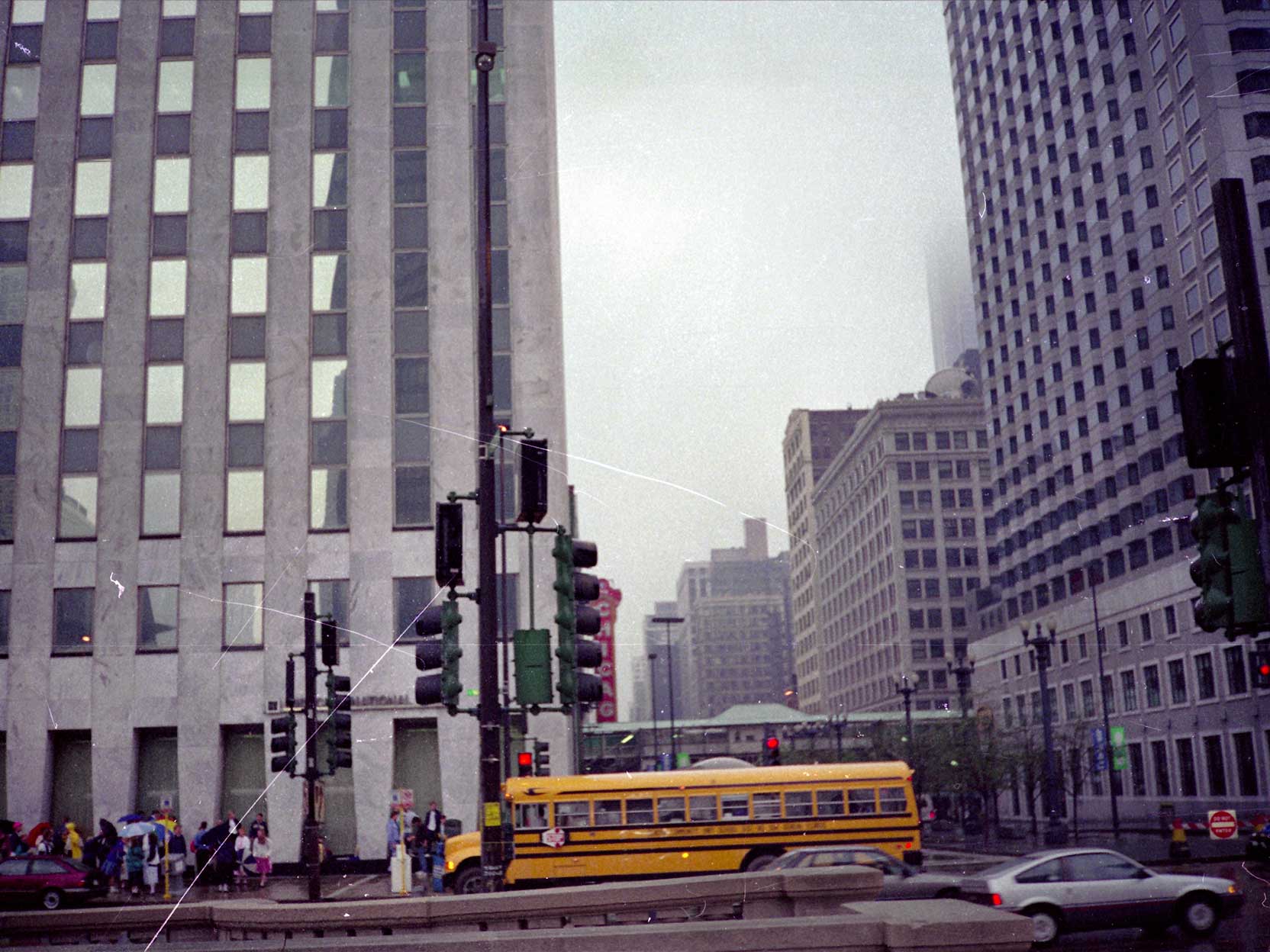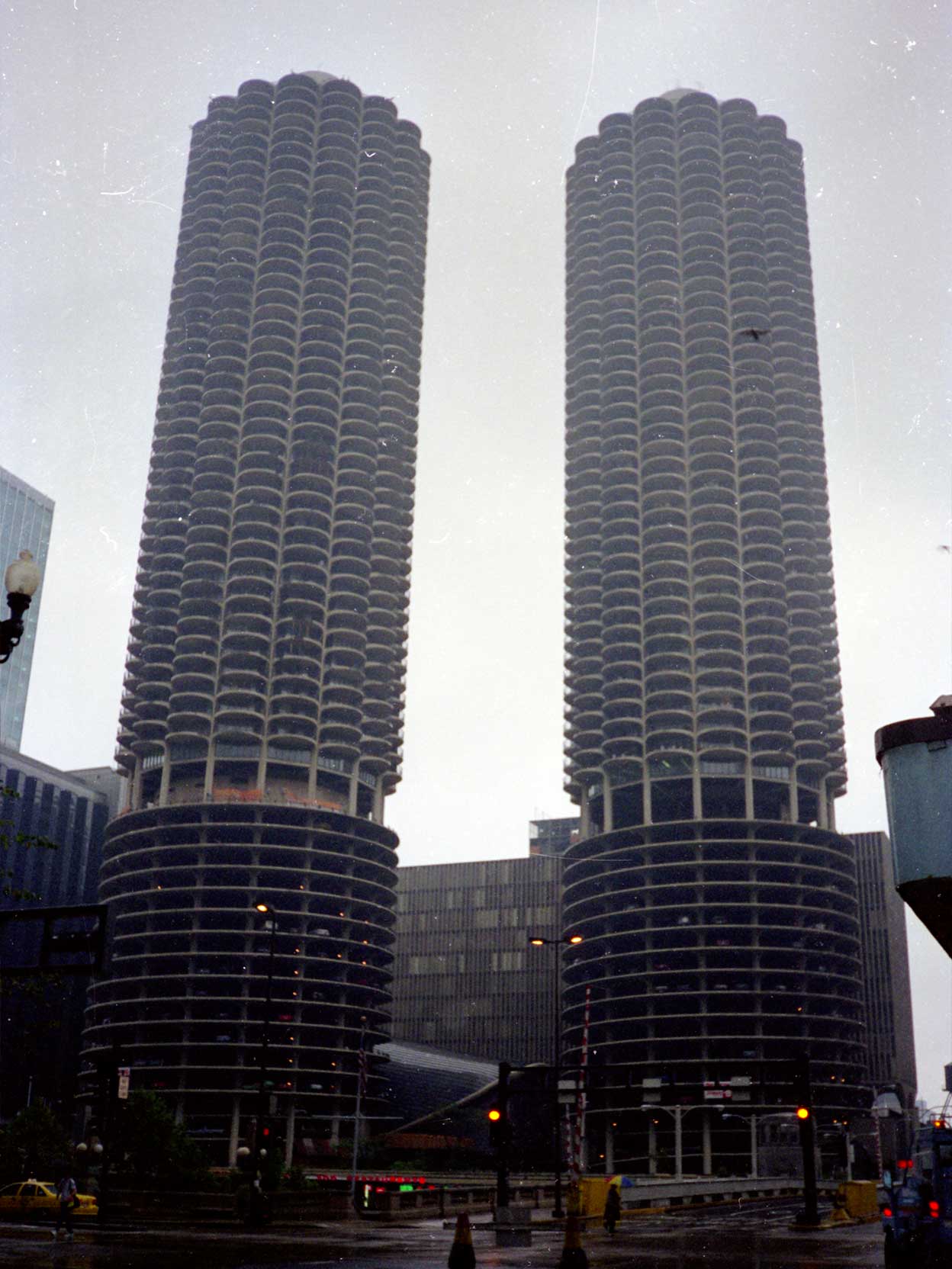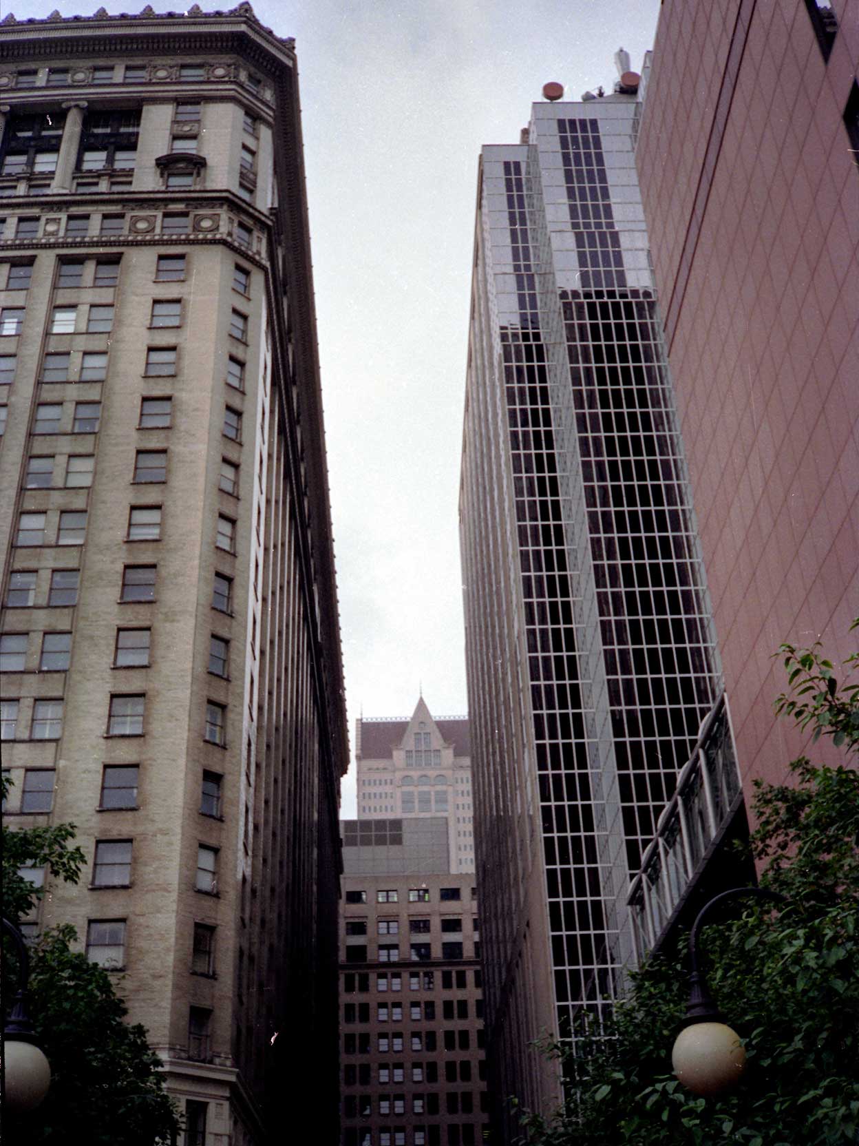 Om een uur of 3 waren we weer op het metrostation en klaar om terug te gaan naar “The Loop”. Daar aangekomen zijn we eerst naar de Buckingham Fountain gelopen, de fontein van “Married With Children”. Toen zijn we naar het Sears building gelopen, het hoogste gebouw ter wereld. We zijn in het gebouw (door Mies v.d. Rohe gebouwd) naar het obsevatory platform gegaan. Schitterend, alleen was het erg druk. Naast het Sears building staat nog een flink hoog gebouw; Als je echter in het Sears building staat is het gebouw ± 75 meter lager; Als je ervoor staat is het bijna net zo hoog. Optisch bedrog dus.