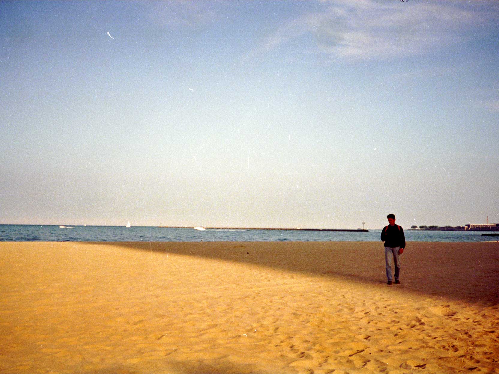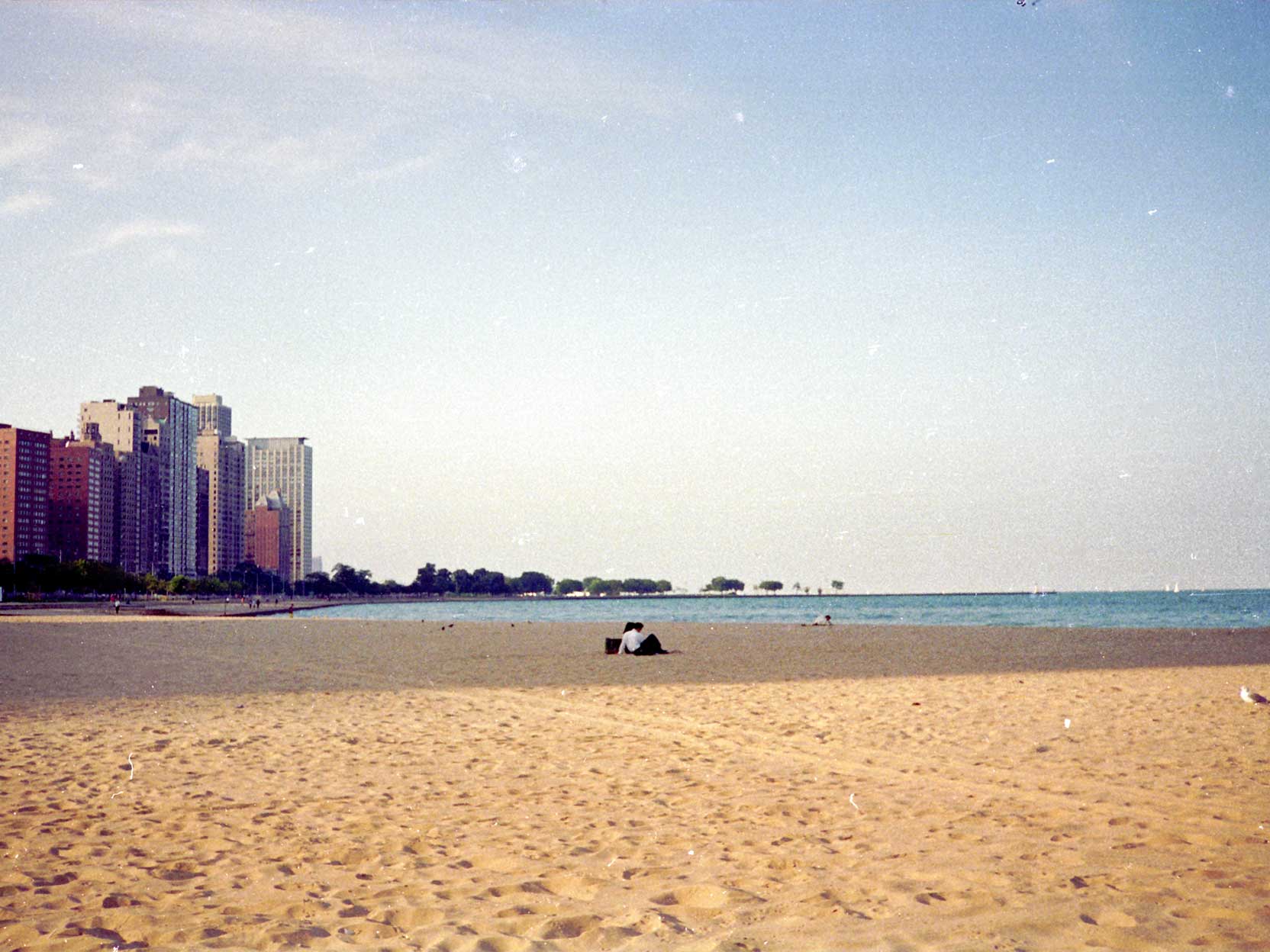 We zijn eerst over Michigan Avenue naar het noorden gelopen, langs het John Hancock Building en toen naar het strand van Oak Street Beach. Het is geen origineel strand maar kunstmatig aangelegd bij Lake Michigan. Sommige stukken zijn compleet met strandzand, net echt dus. Het was gisteren hartstikke lekker weer, we hadden zo kunnen gaan zwemmen, maar ja, geen zwemspullen meegenomen op deze wandeltocht.
