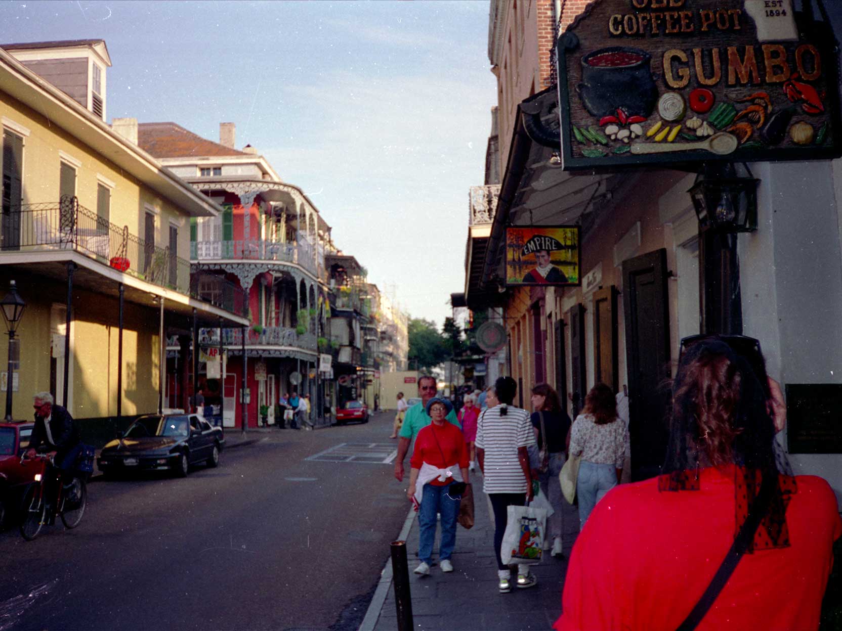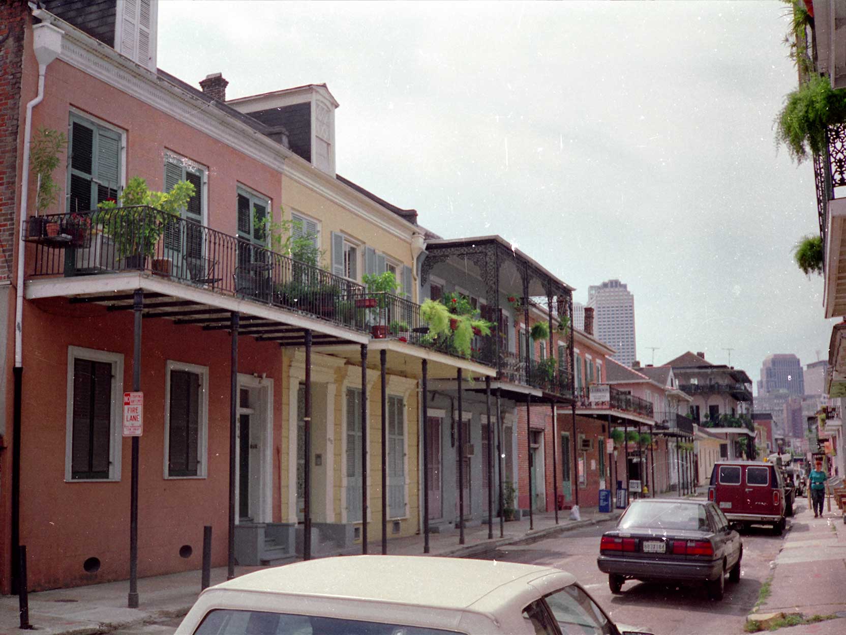 We zijn bezig met een wandeltocht door New Orleans. De stad is erg saai. Het staat vol met huizen uit de Franse, Engelse en Spaanse overheersing maar ze lijken allemaal op elkaar. Het zijn allemaal zwaar verwaarloosde houten of stenen huizen (vrijstaand) met af en toe van die grote balkons met die smeedijzeren hekwerken er op.