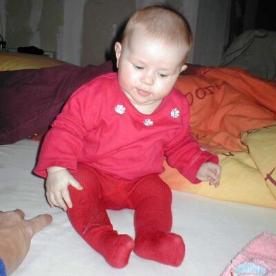 Er was dan wel niet veel visite (niemand wel te verstaan) maar het is “uitbundig” door ons gevierd. (wat foto’s betreft dan) Tot slot stortte de bedbodem van haar ledikantje ook nog naar beneden terwijl ze heerlijk lag te knorren. Ik schrok me wezenloos. Gelukkig niets aan de hand, maar belachelijk dat dat met een babyledikantje kan gebeuren!
