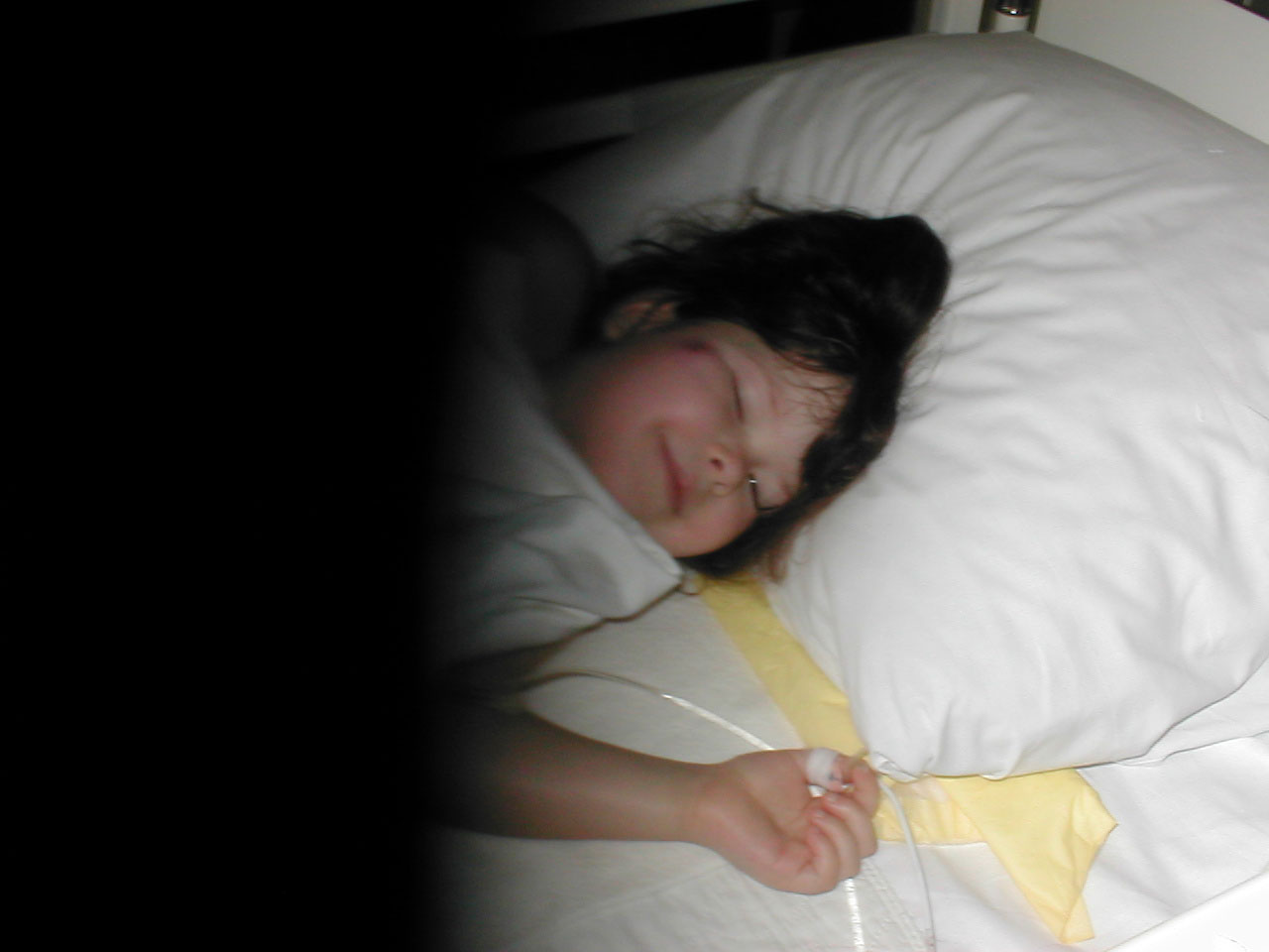 Ze ging een uur te laat de OK in. We hadden afgesproken dat ze een infuus in haar voetje zou krijgen.