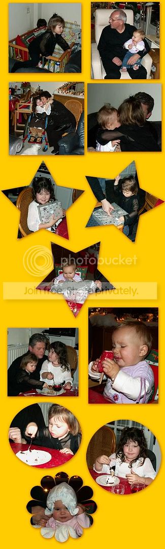 Laura had Sabines bruidsmeisjes outfit aan, stond wel schattig maar was wel te groot. Sabine was toen ook al ruim een half jaar ouder en heeft een veel bredere borstkas. Maar ze was echt feestelijk voor de kerst zo. En natuurlijk moest ze weer de box in