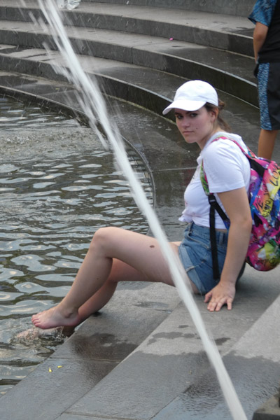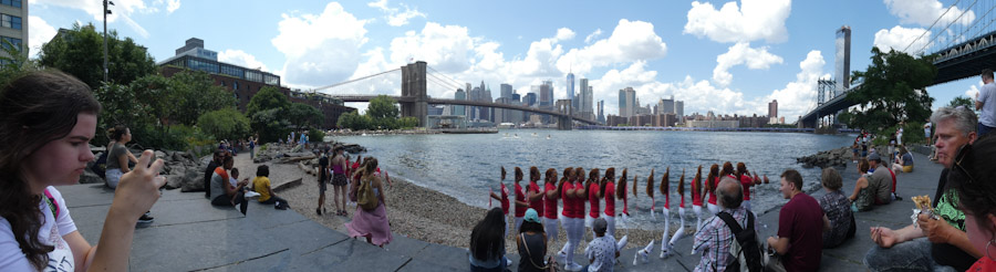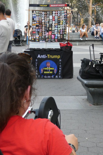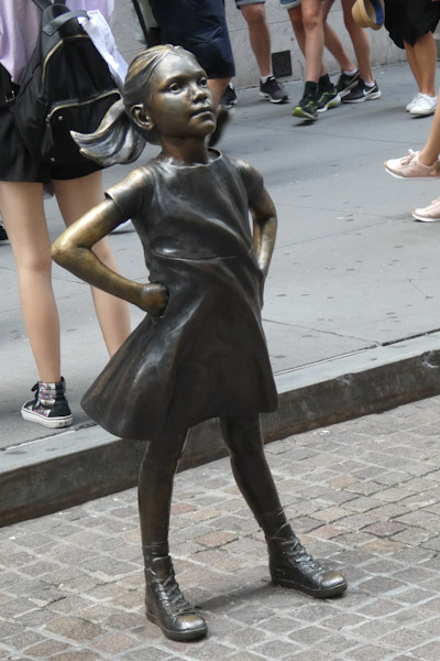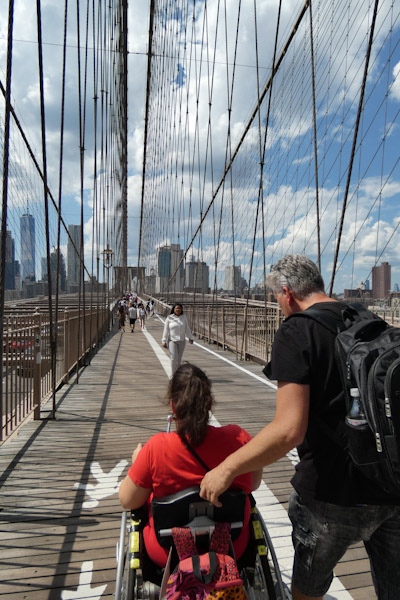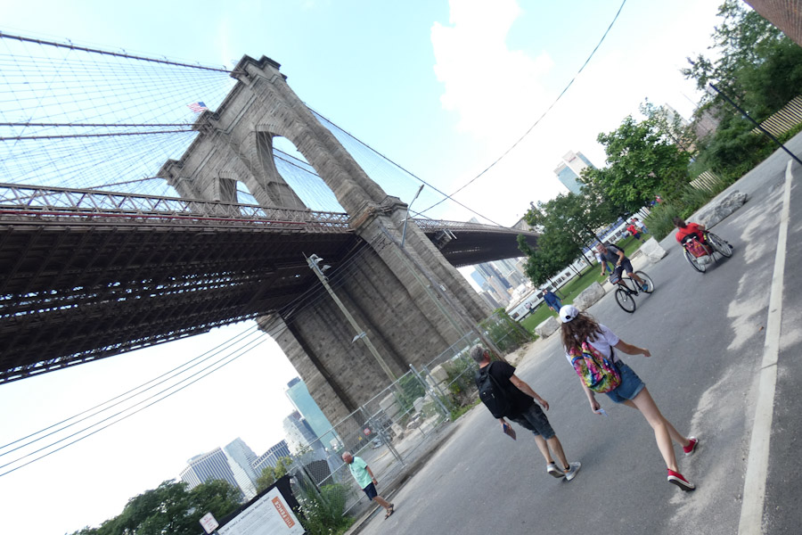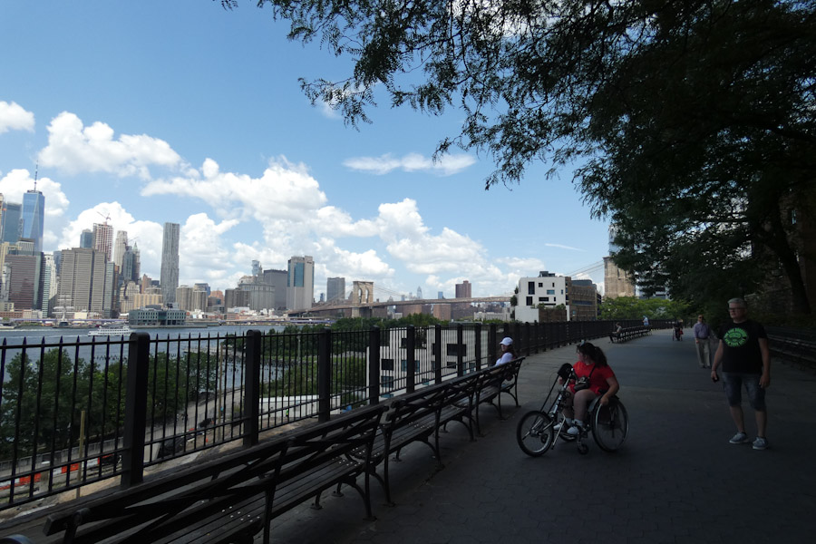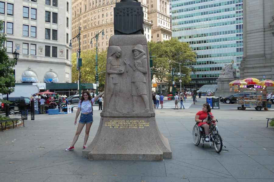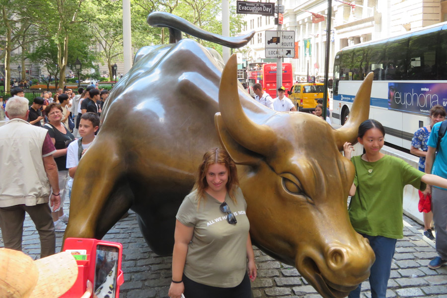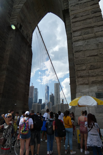 We begonnen de dag eigenlijk al een half uur te laat. Ook de metro was niet zo eenvoudig als we verwacht hadden. Ondanks dat waren we nog redelijk op tijd bij het observatiedek One World Trade Center. Wat een prachtig uitzicht. Hierna brachten we een bezoek aan het 9/11 memorial. Een indrukwekkend, mooi monument en een vreemd idee dat we hier 27 jaar geleden onderuit vandaan kwamen en bovenop stonden. We vervolgden onze weg via Wallstreet en Battery Park naar de Ferry Pier om richting Brooklyn te varen. Vanaf de Brooklyn Heights Promenade en Brooklyn Park en Dumbo hadden we een prachtig uitzicht op de skyline van Manhattan. We zijn op de terugweg over de Brooklyn bridge gewandeld richting Chinatown Little Italy Soho en Washington Square Park. Hoewel de temperatuur reuze mee viel, was het eigenlijk toch te warm voor zo’n fikse wandeling. Daarom hebben we de wandeling van vandaag ook wat aangepast. Onder andere vanwege veel werkzaamheden moesten we ook regelmatig omlopen. En dan nog het wachten op hordes Chinese toeristen. We zijn erg trots op de meiden. Zonder geklaag en gezeur hebben ze de hele wandeling mee uitgelopen/gereden.