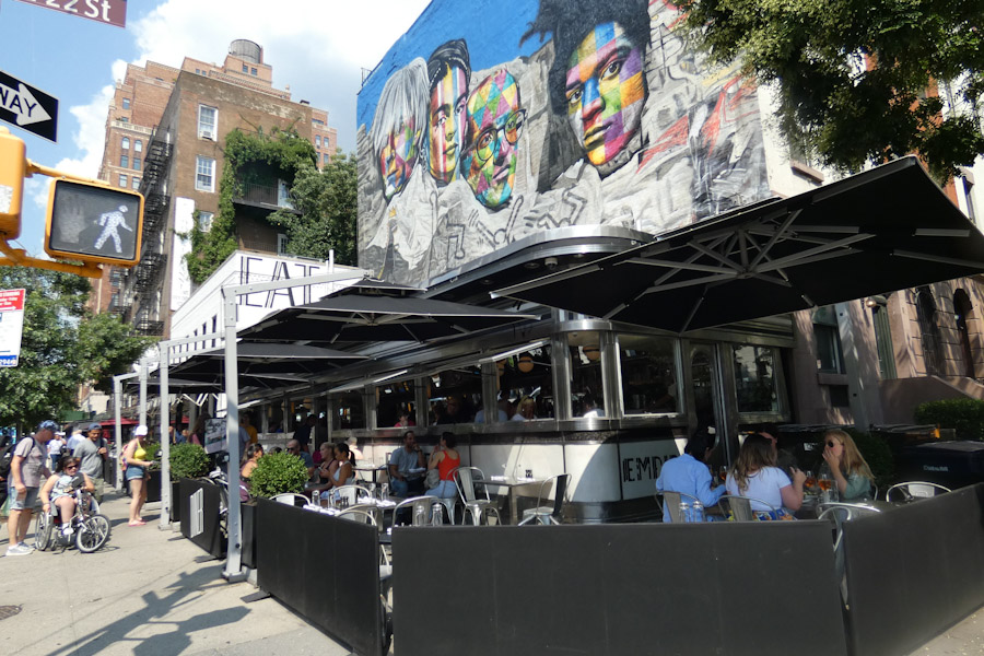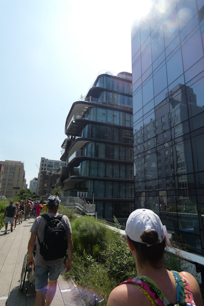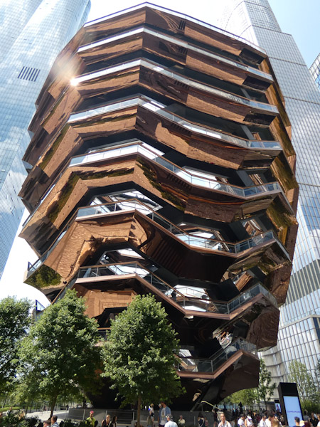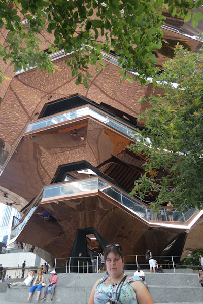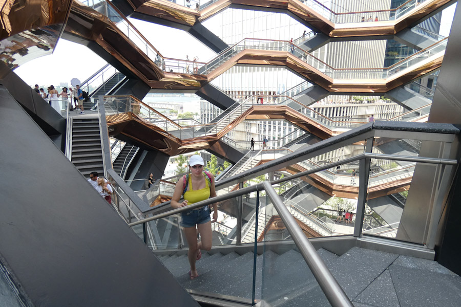 Vrijdag als onze laatste volle dag in New York. En iets meer relaxed dagje in vergelijking met de vorige twee. We moesten wel een aardig stukje lopen naar de pier waar onze cruise begon. Was wel leuk deze boottocht zo dicht zijn Edwin en ik ook nooit bij het Vrijheidsbeeld geweest. Vanaf de pier liepen we naar de Hudson Yards een nieuwe gedeelte van Manhattan wat erg in opkomst is en waar ze erg veel bouwen. We hadden al tickets geboekt voor de Vessel, ze zijn gratis maar het is wel belangrijk dat je een tijdslot reserveert. Wat een bijzondere bezienswaardigheid is dat. Op het laatste moment nog op onze bucketlist gezet door Laura. In het winkelcentrum van Hudson Yards was op level 3 een kunstwerk waar iedereen zijn eigen kunst kon maken, een interactieve muur, gemaakt van lovertjes. Daarna liepen we zo van de Hudson Yards de Highline op. Dat is een stadspark gemaakt op een oude niet meer gebruikte spoorweg. Ik had me hier erg op verheugd, maar we zijn e r halverwege al weer afgegaan. Het was wel leuk maar het was net zo druk als op 5th avenue in de spits. Bij 23th street liepen we verder richting de Flatironbuilding, de Empire State Building, Madison Square Garden. We hadden nog een bezoekje aan Macy’s en de Manhattan Mall op de planning staan maar we hadden allemaal echt geen zin meer om te gaan shoppen. Het was ook de bedoeling om met de metro terug te gaan. Omdat het zo stervensdruk was op straat durfden we de metrorit niet echt aan. Al.met al hebben we 3 dagen met behoorlijk wat kilometertjes gemaakt.