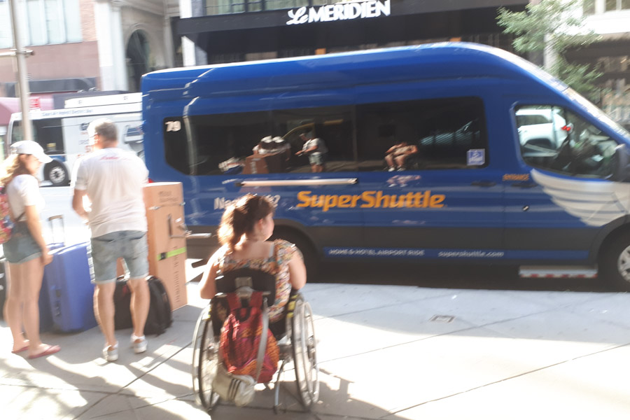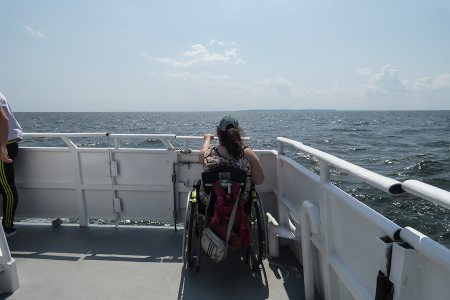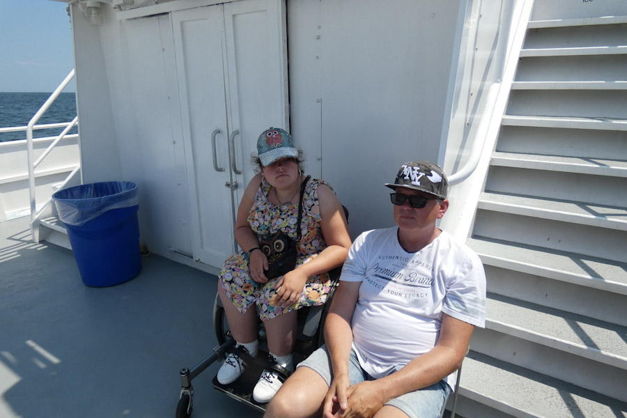 Zaterdag om 8:45 am werden we opgehaald door onze superdeluxe supershuttle om ons naar Avis JFK te brengen. Deze chauffeur had overduidelijk veel meer verstand van het vervoer van rolstoelen dan zijn collega dinsdag. Het verliep allemaal heel voorspoedig en om 10 uur waren we al onderweg naar Breezy Point, Long Island waar onze Cruise vandaan vertrok. Met nieuwe Chevrolet Explorer reden we er naartoe. Alles paste er gelukkig in. Om 1 uur pm vertrok de boot, Sabine kon daar eigenlijk geen kant op want er was maar één plaats waar ze met de rolstoel kon komen en dat was achterin op het dek. De crew was blijkbaar erg beschaamd, want ze werd volledig in de watten gelegd. Edwin kreeg een stoel en alle mensen werden weggestuurd en zij mochten overal vooraan staan. We hebben echt heel veel walvissen gezien. Het duurde wel allemaal erg lang. Het was een cruise van 4 uur en de meeste mensen waren het denk ik een beetje zat want het werd steeds rustiger aan de reling. Laura was helaas een beetje zeeziek en die vond er toch al niet zoveel aan. Al met al was het toch een erg leuke trip. Rond half 6 pm reden we richting Poconos waar we een overnachting hadden onderweg naar Niagara. We hadden de tandpasta in het hotel laten liggen in New York dus moest even wat nieuwe kopen. Onderweg van Poconos naar Niagara stopten we dan ook nog bij een echte Walmart, een beleving op zich.
