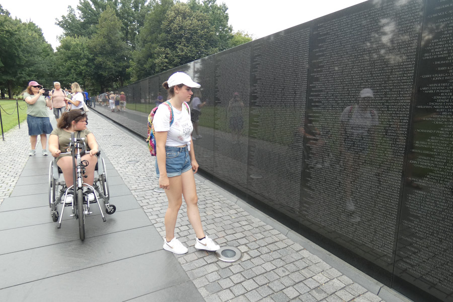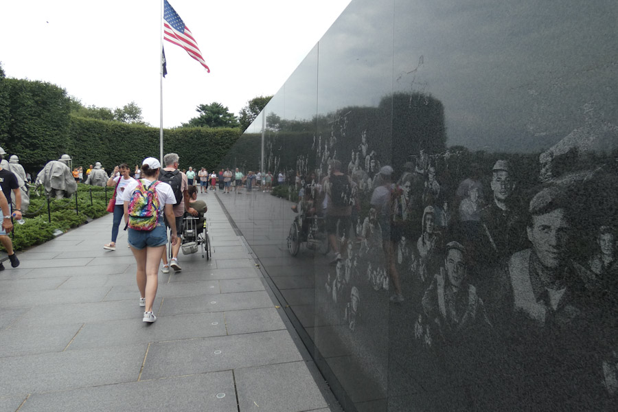 We hadden al in Nederland besloten om in Washington fietsen te huren bij Capitol Bike. Dat werkte de eerste sessie perfecr. De tweede keer waren er te kort fietsen bij het dock en moesten we een ‘station’ verder lopen. De derde keer ‘dockten’ onze bikes niet en moest ik bellen naar CaBi om de rit te cancellen de andere keer konden we geen nieuwe rit meer maken.de vierde keer weer geen fietsen beschikbaar, ook niet na een half uur lunchpauze dus weer een station 800 m verder. Op zich was het fijn om te fietsen anders was het allemaal te ver om te lopen . Maar toch niet zoals we gehoopt hadden. Eerst bezochten we het Witte Huis. Maar we zijn allemaal niet zo’n fan van de huidige bewoner. Het demonstranten kraampje voor het Witre Huis was dan ook erg leuk. De volgende halte was Het Lincoln Memorial. Mega-druk met toeristen maar leuk met goed uitzicht op het Washington Monument en Refflection pool. Het Vietnammemorial maakte weer indruk en er bleek nu ook een Korean war memorial te zijn. We wilden naar Arlington fietsen maar dat was nog niet zo makkelijl. Een en al detour maar het is gelukt.de graven maakten wel indruk, maar her graf van Kennedy en de onbekende soldaat vielen wel wat tegen .Terug nog via de National Mall gefietst richting het Capitool. Eigenlijk wer onze mening van destijds bevestigd , prachtige maar saaie stad niet erg veranderd, al waren er nu wel plekken waar je even wat kon eten of drinken onderweg. Ons hotel was geweldig (deze keer met echte borden en bestek?) maar lag midden in het zakencentrum . Met gevolg; ’s avonds waren er geen eettentjes open dus helaas werd het Mc Donalds, al had Laura daar gek genoeg niet zoveel moeite mee.
